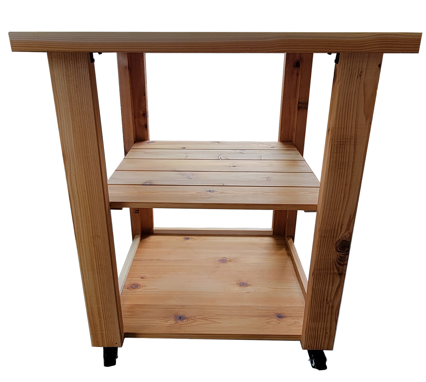 The Fold-Up tables provide additional working surfaces and we finish ours so you can rest food directly on them. It is built as a butcher block with two, stainless hinges so you can both cut food on it or use it to rest whatever you would like.