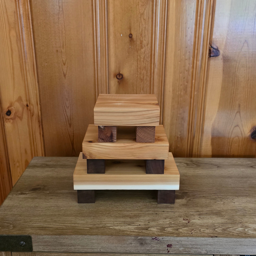 Add a touch of natural beauty to your home with these rustic wooden stands. Crafted from contrasting light and dark cedar wood, these versatile risers are ideal for showcasing your favorite potted plants, elevating kitchen canisters, or creating decorative displays. We coat them with a finish to brighten the wood and help prevent staining, adding to their durability and natural appeal. Their simple yet elegant design complements farmhouse, cottagecore, and minimalist aesthetics alike. Available in multiple sizes to perfectly fit your space. These unique stands also make a thoughtful gift for plant lovers and home decor enthusiasts!